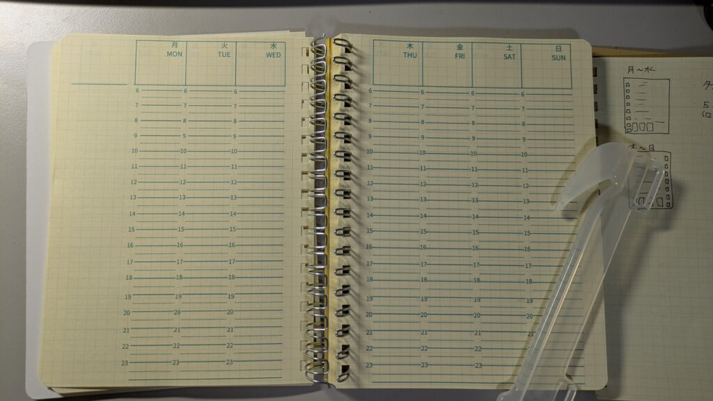 自作なので使ってみて改良したいところがあればすぐに修正可能。時間や曜日の配分を自分に合わせてカスタマイズできるのは大きな楽しみです。これから1冊でスケジュールとノートをまとめる新しい習慣が楽しみになりました。